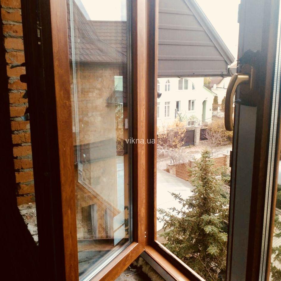 Окна заламинированы высококачественной пленкой под цвет «золотой дуб», а сама основа профиля не белая, а коричневая (цвета «карамель»), профиль с этими характеристиками изготавливается только на производстве Rehau в Германии.