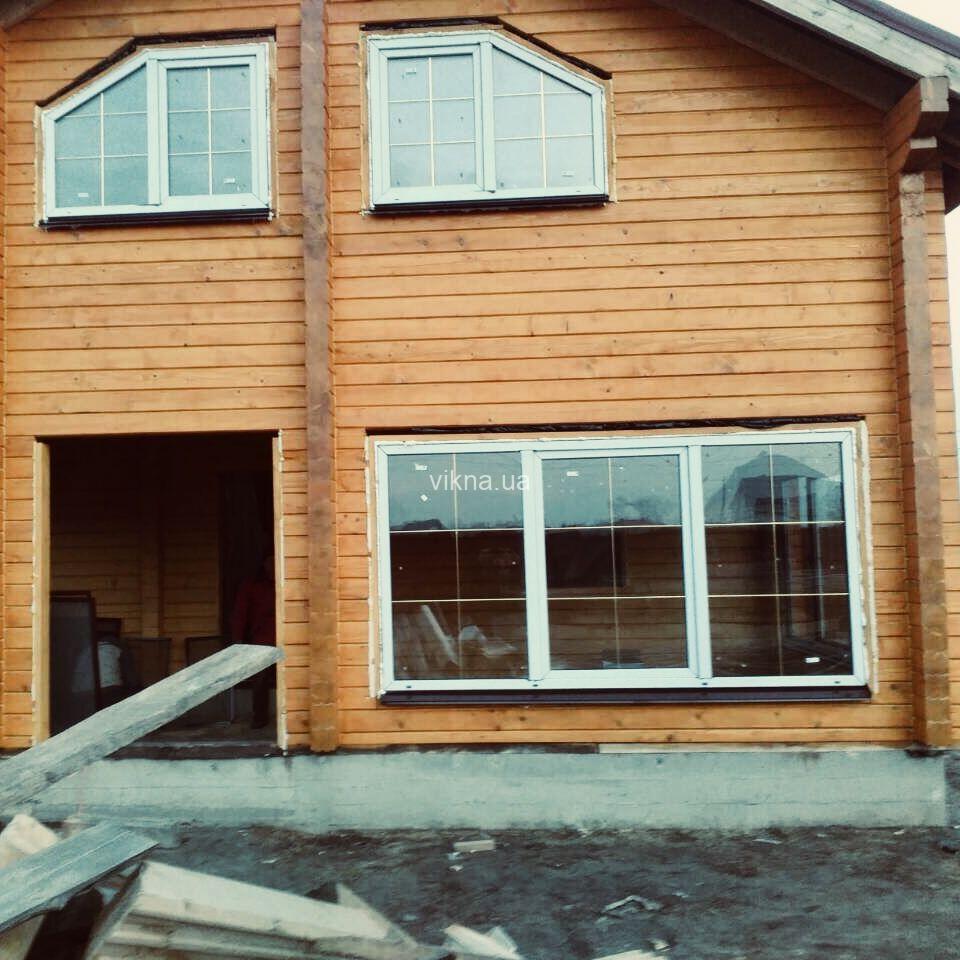 Деревянные дома очень теплые, соответственно требуют установки теплых, энергосберегающих окон. Профиль Rehau Euro 70 прекрасно справляется с этой задачей за сравнительно небольшие деньги. В окна установлен теплый двухкамерный стеклопакет с двумя энергосберегающими покрытиями толщиной 40мм, формула стеклопакета 4LowE-14-4-14-4LowE. В стеклопакете есть шпросы золотого цвета, которые эффектно сочитаются с темной ламинацией.